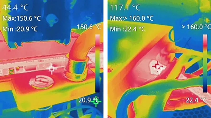 Обозреватель HardwareLuxx Андреас Шиллинг (Andreas Schilling) зафиксировал экстремальный нагрев разъёма питания видеокарты Nvidia GeForce RTX 5090. В ходе тестирования с использованием дорогостоящего тепловизора он обнаружил, что 12+4-контактный разъём достиг температуры свыше 150 °C. При этом сама видеокарта, оснащённая жидкостным охлаждением, сохраняла относительно невысокую температуру.