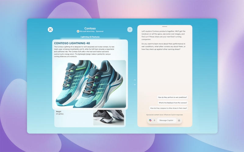 Компания готовится развернуть два новых рекламных формата, «полностью разработанных с учётом Copilot. Эта реклама интерактивна по своей природе и адаптируется к каждому запросу пользователя». Первый формат получил название «Рекламная галерея» (Advertising Showroom), и это гигантские рекламные баннеры рядом с текстовым полем Copilot. «Так, если пользователь начинает задавать Copilot вопросы о конкретном продукте и выражает желание [его] купить, его могут пригласить в рекламную галерею. Здесь органические материалы дополняются богатым рекламным контентом, помогая продемонстрировать преимущества продукта по мере того, как люди задают Copilot новые вопросы. Эта среда с погружением позволяет пользователю взаимодействовать с продуктами так, будто он пришёл в настоящую выставочную галерею. В будущем возможности расширятся ещё больше, когда в рекламную экспозицию интегрируются агенты брендов, и люди смогут напрямую взаимодействовать с виртуальным представителем бренда», — рассказала Microsoft.