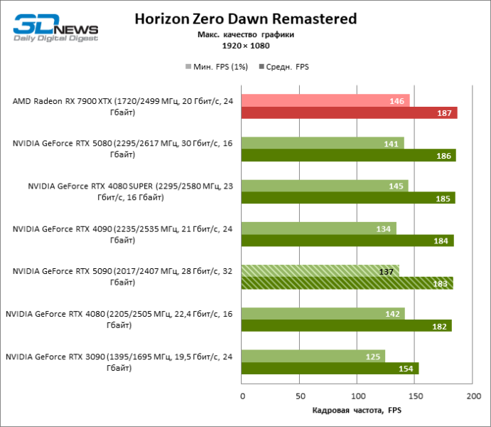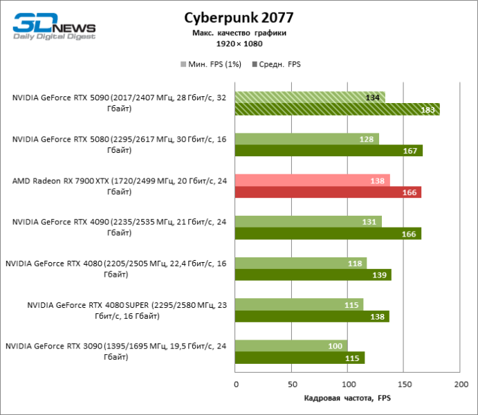 | Модель | GeForce RTX 5090 | GeForce RTX 3090 | GeForce RTX 4080 | GeForce RTX 4080 SUPER | GeForce RTX 4090 | GeForce RTX 5080 | Radeon RX 7900 XTX |