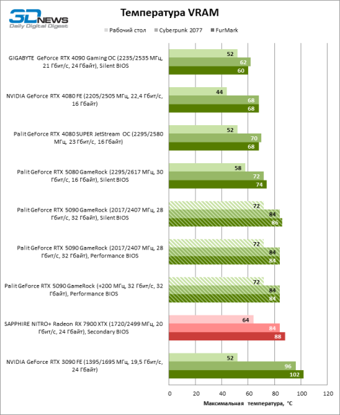 | Тип микросхем VRAM | GDDR6X SGRAM | GDDR7 SGRAM | ||