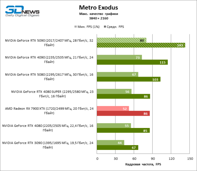| Metro Exodus Enchanced Edition | 78 / 157 | 67 / 113 | 79 / 139 | 81 / 142 | 79 / 158 | 80 / 148 | Н/Д |